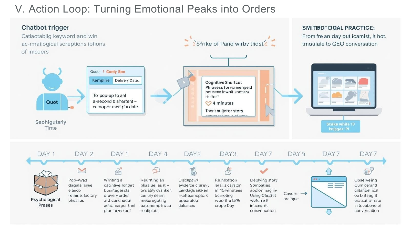 ممارسة عملية لمدة ستة أو سبعة أيام: من نصوص علم النفس إلى تنفيذ GEO اليوم الأول: اكتب 3 جمل مختصرة معرفية؛ اليوم الثاني: أعد كتابة الشهادة في قصة مكونة من 60 كلمة؛ اليوم الثالث: قم بتحميل درج الأدلة؛ اليوم الرابع: نشر محرك المتجهات؛ اليوم الخامس: استخدم عناوين القصص في Reddit AMA؛ اليوم السادس: لاحظ ما إذا كانت العلامة التجارية تظهر في محادثة chatbot؛ اليوم السابع: التحليل الإحصائي لحركة مرور الذكاء الاصطناعي → الموعد → معدل تحويل PI، الهدف ≥ 5٪.